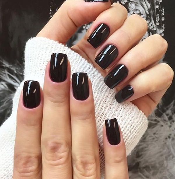 A great shiny black that certainly looks good on someone who wears a lot of jewelry. These shiny black nails are the latest trend and we hope that trend never goes away.