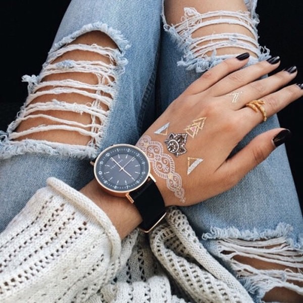 This is a classic design that has black as the backdrop and gold stripes in various styles. I love it because it’s really unique and makes the style special. You could wear this style to the office or to a party.