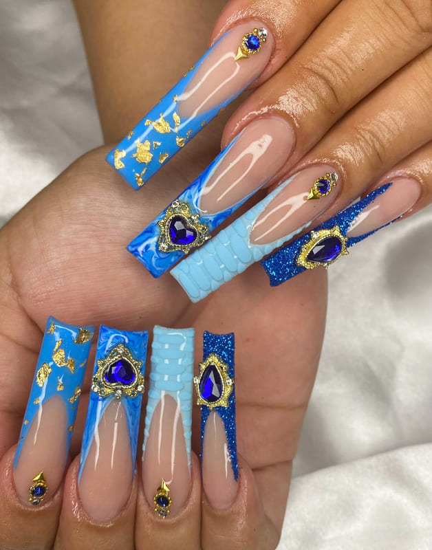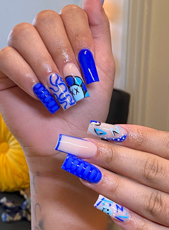 So, what kind of details are there in blue nail designs?