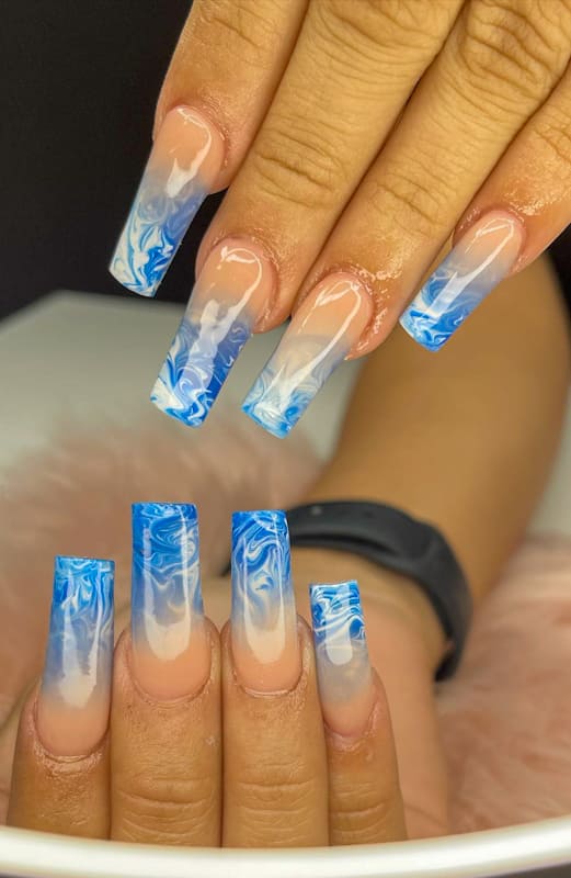 Blue marble and ombre nails