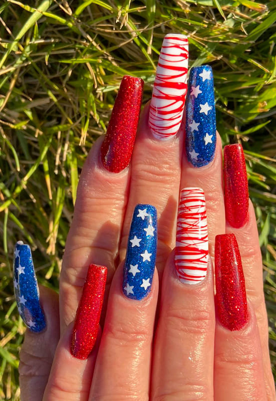 Patriotic red white and blue nails