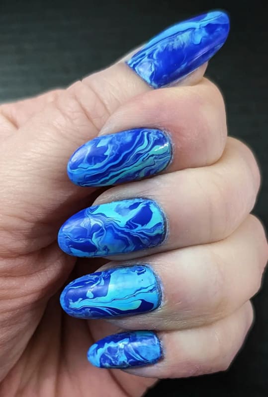 Almond blue marble nails