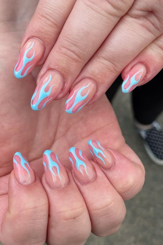 Blue flame nude almond nails