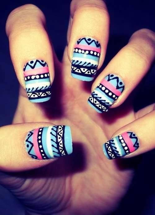 Who could have thought that Aztec inspired prints on nails can look so insanely pretty? Aztec prints with tiny stripes and shapes are completely drool-worthy and eye-catching.