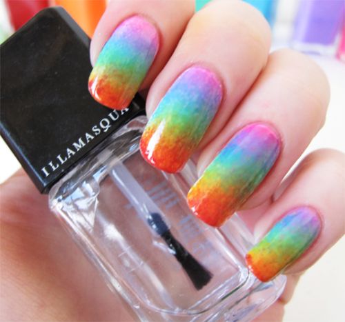How about trying all major colors in a single nail art design? Rainbow nails with bright hues look splendid so add some colors to your nails and look chic and trendy.