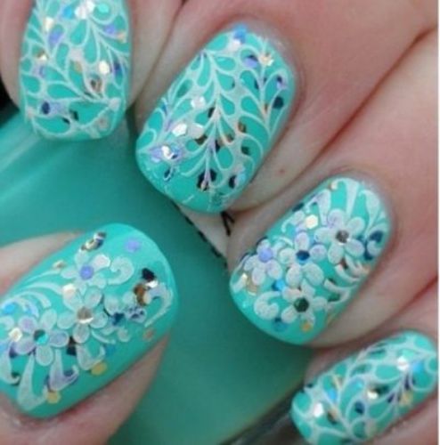 Do you think there’s any embellishment more perfect for a true diva than sequins? If you are ready for a walk on the wild side, paint all your nails with sequins and for a more subtle look you can go half and half with sequins or one nail with sequins is also a great option for a glamorous look.