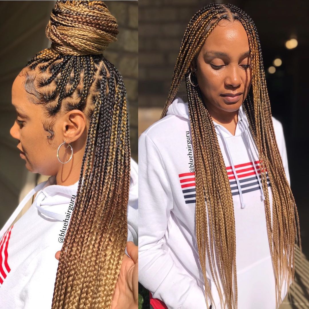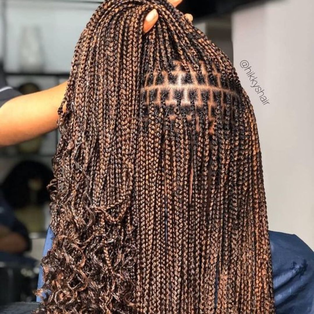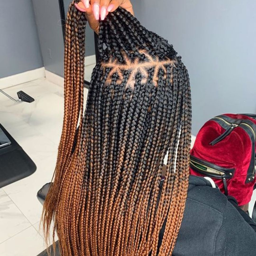 This newer technique eliminates the small knot typically seen at the base of traditional box braids, offering a more seamless look.