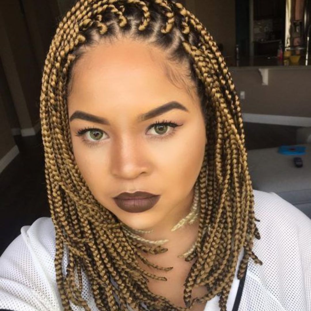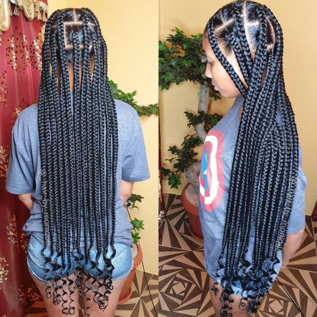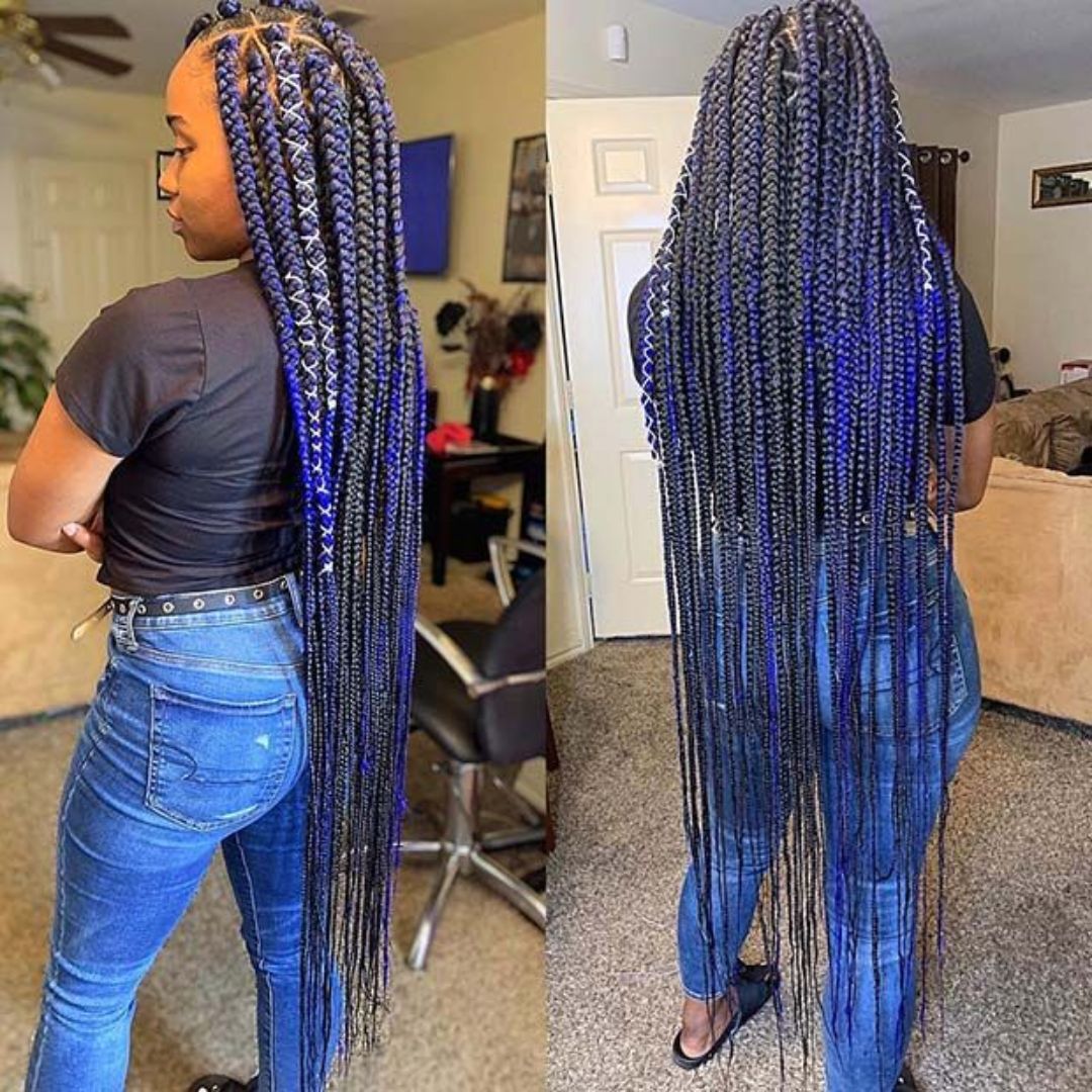 Oversized and dramatic, jumbo box braids are a bold choice, especially when adorned with accessories like beads or gold cuffs.
