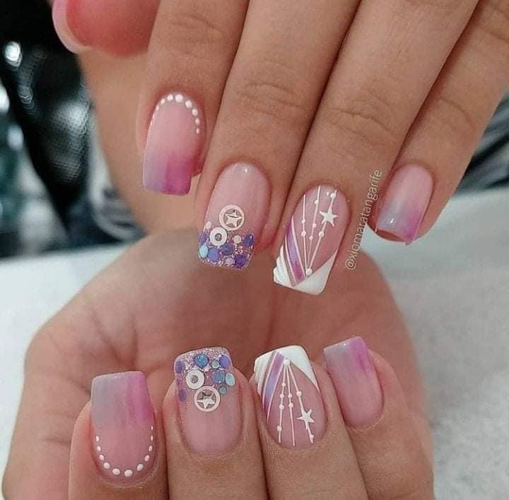 3. Geometric Patterns: Square tip nails provide an excellent canvas for geometric nail designs. Experiment with clean lines, triangles, squares, or even abstract shapes using contrasting colors or monochromatic tones. You can create geometric patterns using nail art brushes, tape, or stencils. The combination of precise lines and bold shapes will give your manicure a modern and edgy touch.