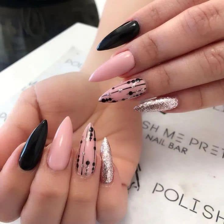 Black nails with pink is a popular trend that has taken the beauty world by storm. The look is bold and edgy, yet still feminine and glamorous. With black nails and pink accents, you can create a unique look that will turn heads wherever you go. Not only does this trend give you the chance to express your personal style, but it also allows you to experiment with different shapes, textures, and colors. Whether you’re looking for an everyday look or something more special for an event, black nails with pink will be sure to make a statement.