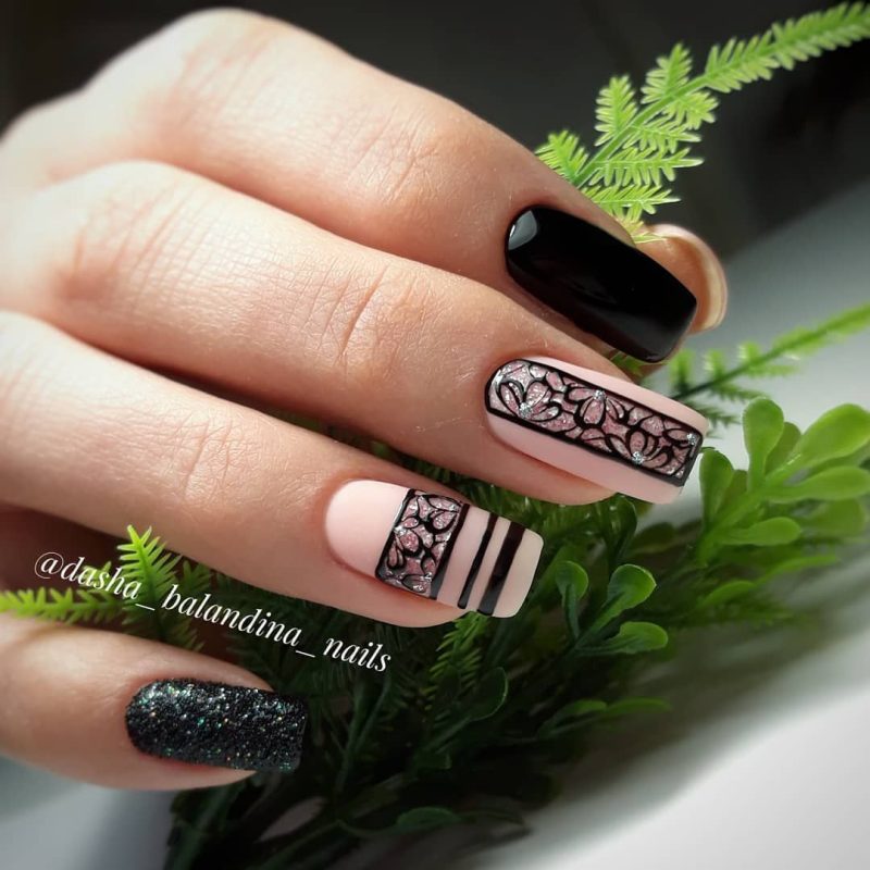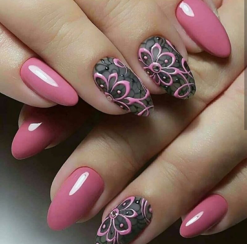 +50 PHOTOS: BLACK NAILS WITH PINK【Matte Glossy Stick】 💅