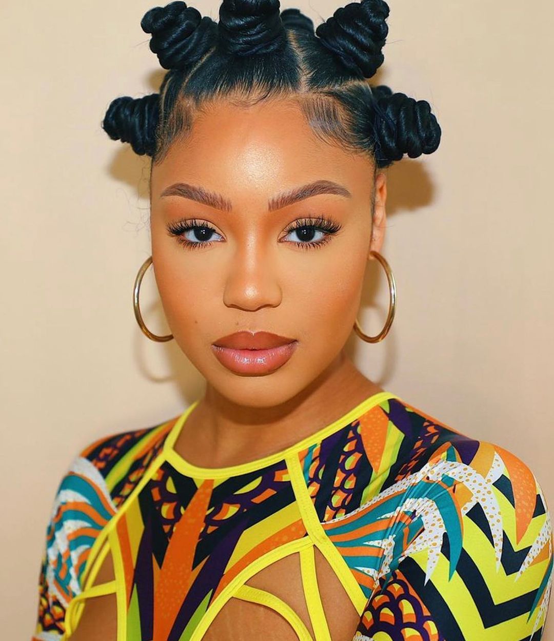 - Bantu Knots: Small sections of hair are twisted and then wrapped in such a way that they form a bun. They’re called ‘knots,’ but they’re essentially small coiled buns.