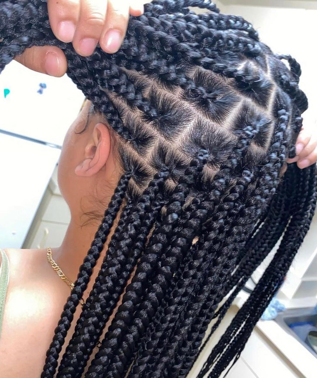 - Box Braids: These are individual plaits that are usually divided by small squared-off parts or boxes. Box braids can be of any size or length.