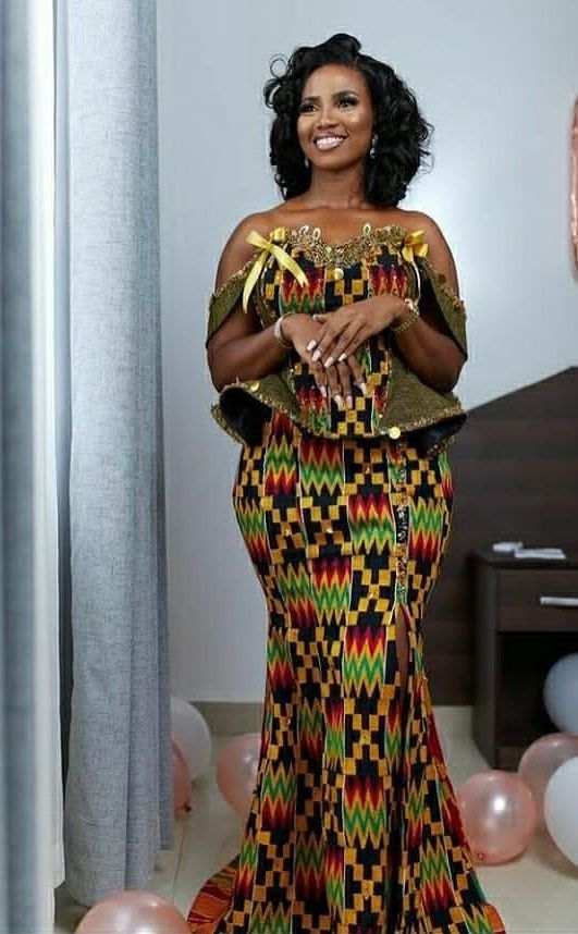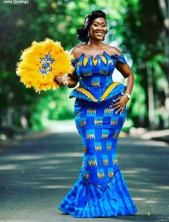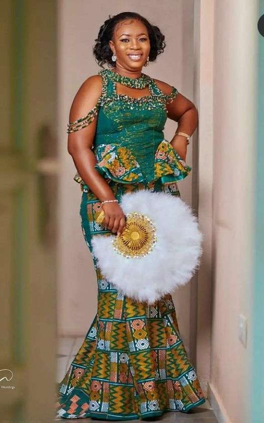 Ankara prints are a popular choice for Ghana Kaba styles, known for their bold and vibrant patterns. Whether it’s a full Ankara Kaba dress or incorporating Ankara fabric into specific elements of the outfit, these prints add a touch of color and liveliness to your traditional attire.