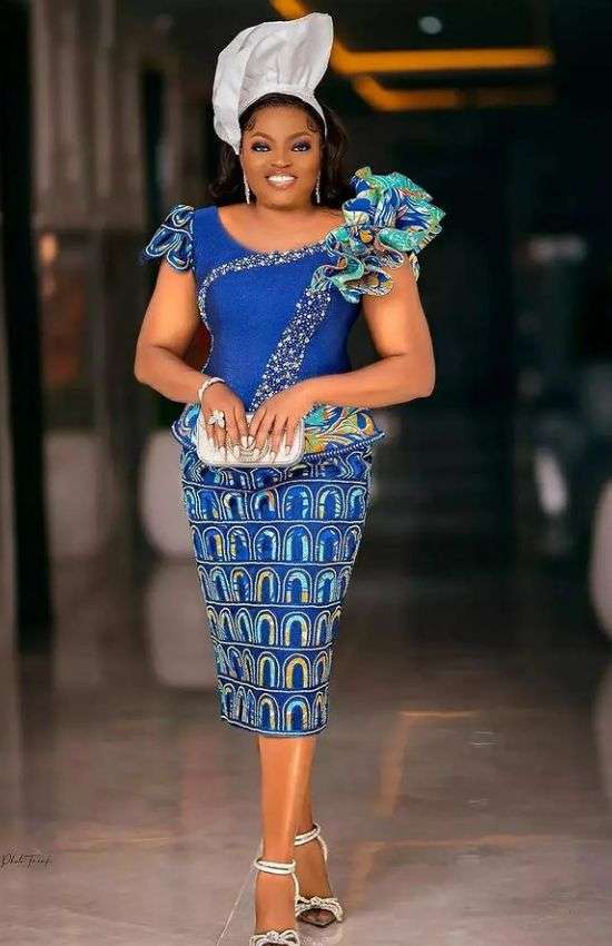Experiment with mixing and matching different fabrics, colors, and textures to create personalized Ghana Kaba styles. Combine contrasting prints, incorporate lace or organza overlays, or play with different fabric combinations to create a unique and eye-catching ensemble.