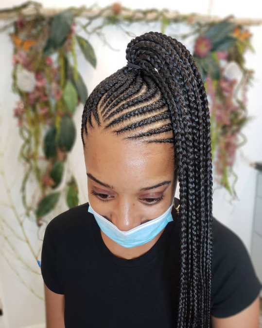 - Lemonade Braids with Side Twist Ponytail: Combine Lemonade braids with side twists in a low ponytail for a chic and modern look.