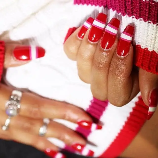 Red Acrylic nails are the ultimate chameleon. Red has so many different nail designs. It can be both traditional and trendy, innocent and dangerous. You might love those black nail designs on a Friday night, but aren’t they a little much for Sunday brunch? And the classic, natural nail ideas look great with your work suits, but aren’t they a little, well, boring for Saturday?