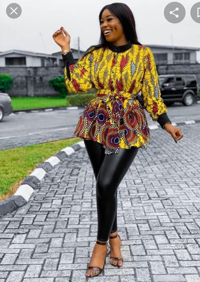 4. Ankara Blouses with Peplum: Peplum blouses add a feminine touch and can be paired with plain skirts or trousers for a balanced look.