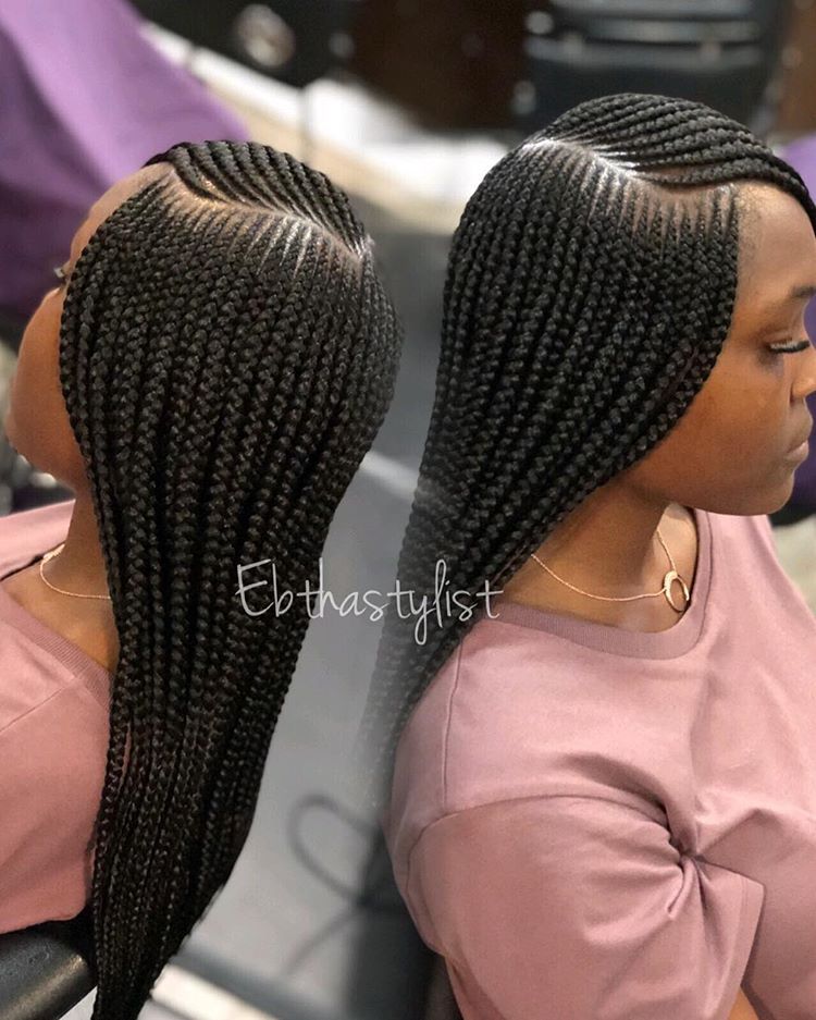 - This is the traditional style where braids run straight from the front to the back. It’s timeless and can be worn for both casual and formal occasions.