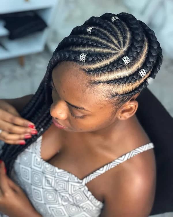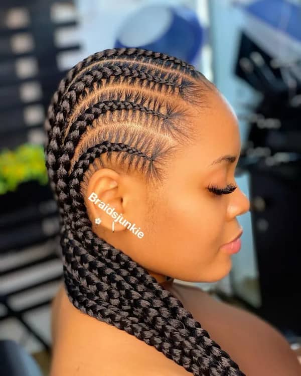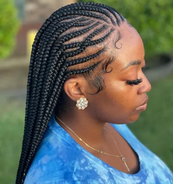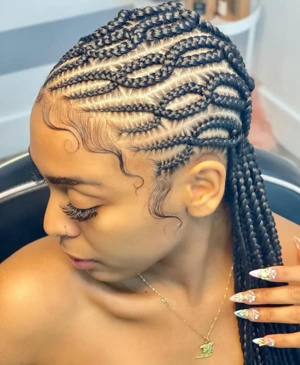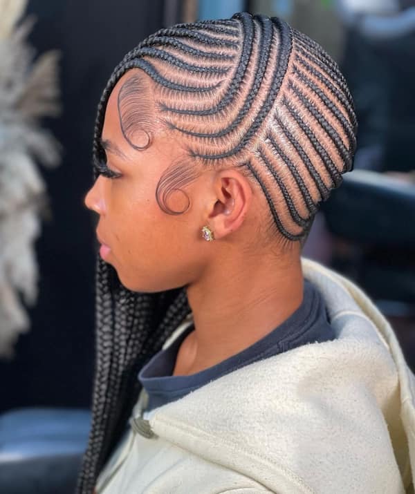 - Instead of straight lines, opt for curvy braids that snake around the head. This style has a playful vibe and showcases the skill of the braider.