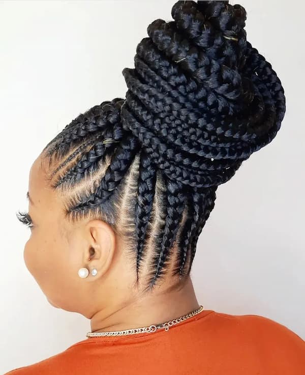- Once braided, twist the braids into a bun at the nape or atop your head. This style oozes sophistication.