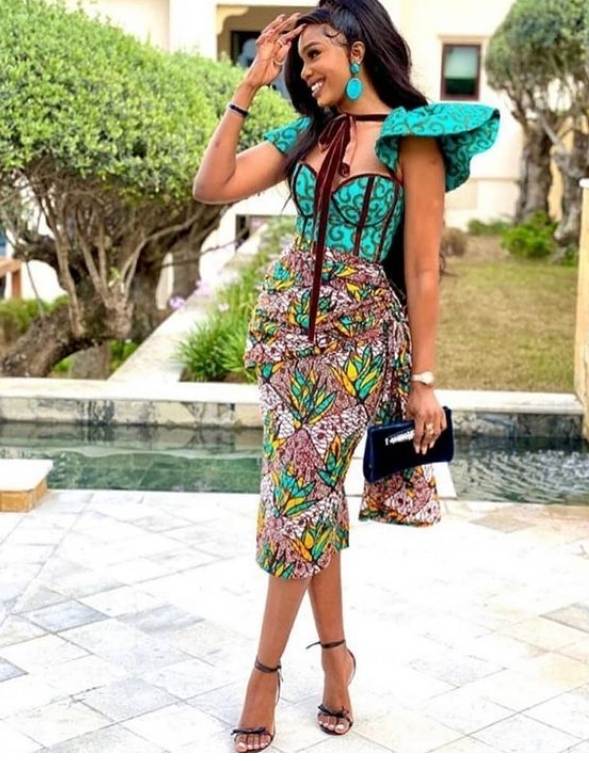 Experiment with mixing different African prints together to create a truly individual and eclectic look. Combine contrasting patterns and colors in a dress or opt for a two-piece ensemble with complementary prints.