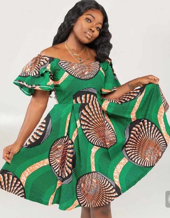 For a playful and feminine look, opt for a short or midi-length African print dress with a flared silhouette. These dresses are perfect for both casual outings and semi-formal events, adding a touch of elegance to any occasion.