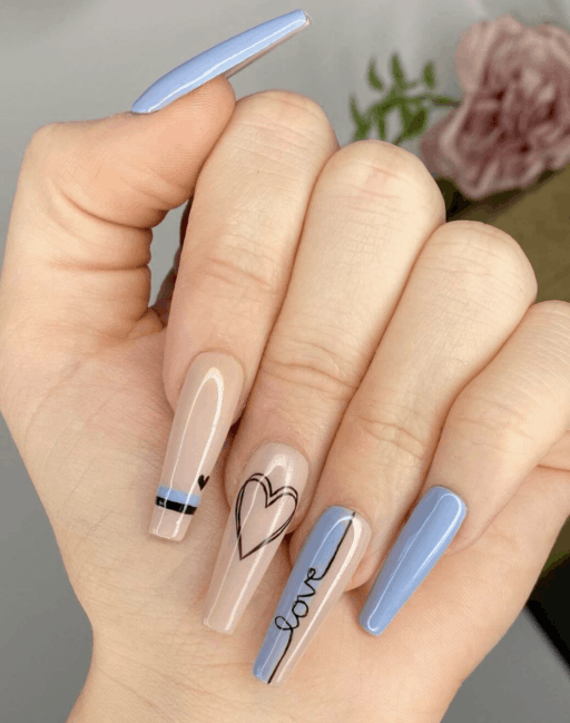 In fact, you’ll see everything from pastels to deep winter tones and nude manicures below. All of these manicures incorporate hearts in some way; some are more obvious while others are more subtle.