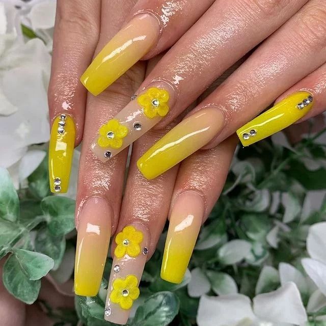 One of the hottest trends in nail fashion is yellow acrylic nails. It is such a versatile color that it can be fun, flirty, glamorous or even sensible enough for work. You have so many options when it comes to yellow, and it can add a pop of color to your style.