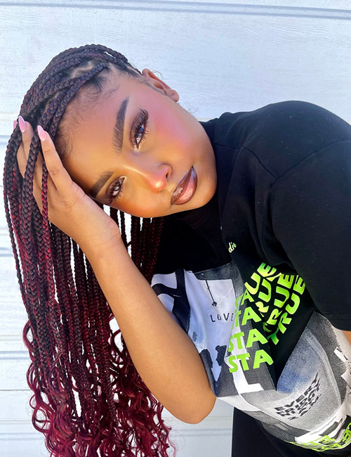 Burgundy Curly Ended Knotless Braids