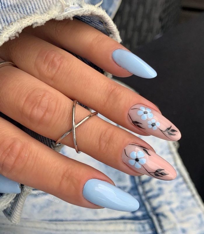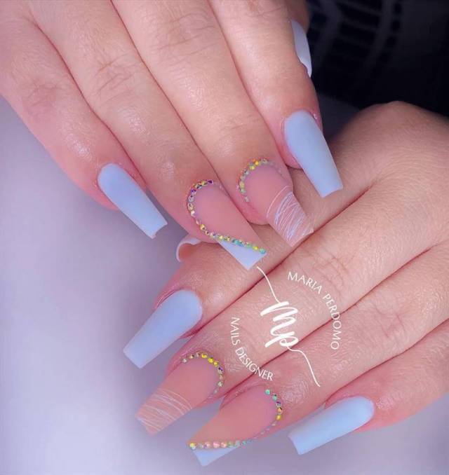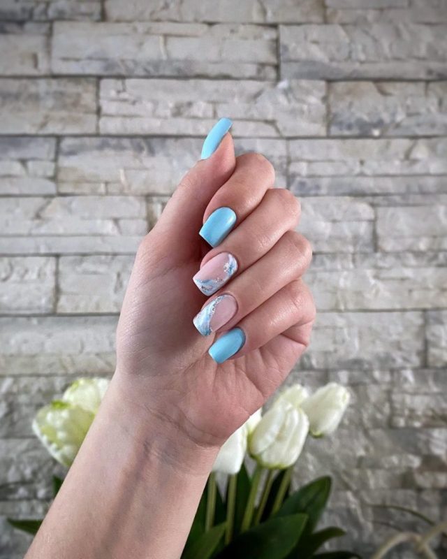 Baby blue nail is a popular romantic color that is always in trend in summer, winter, and spring. There are many creative and stunning designs we found in blue color that make you bold, subtle, and confident.