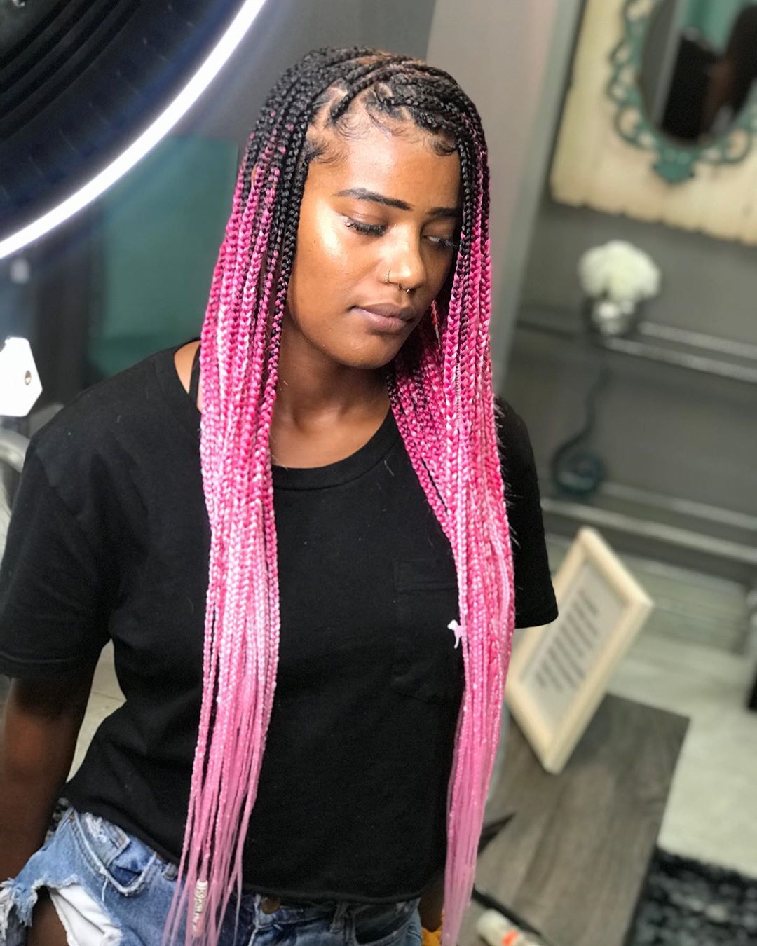 Pink Medium Knotless Braids