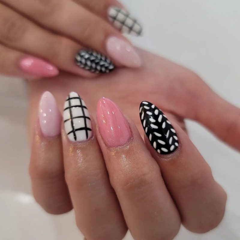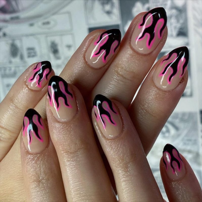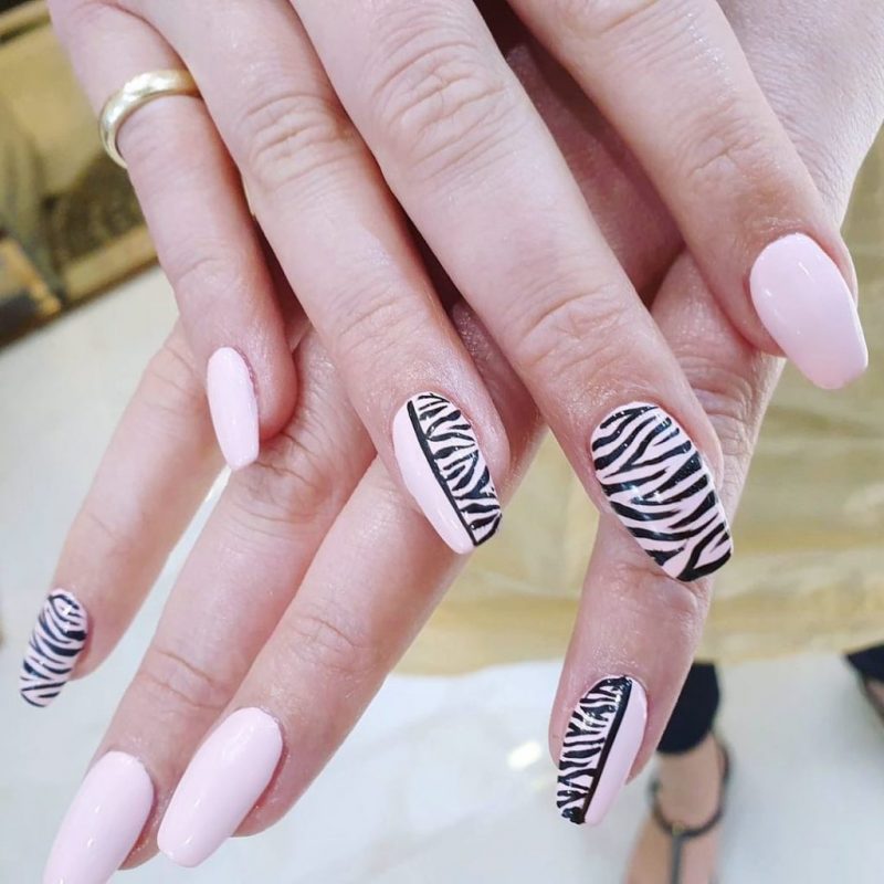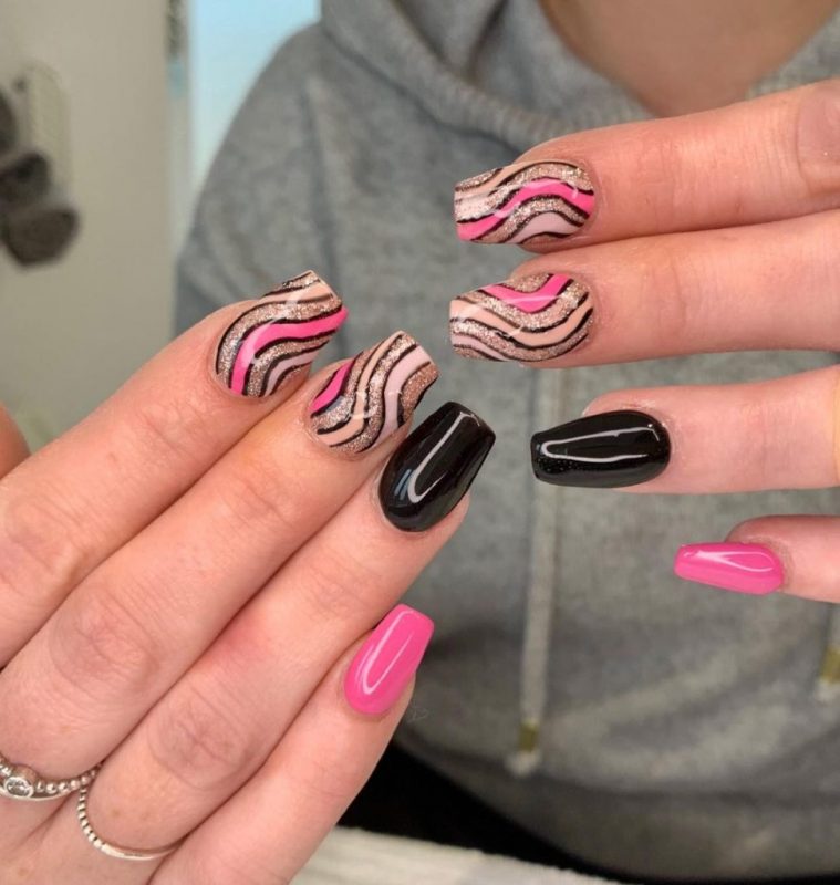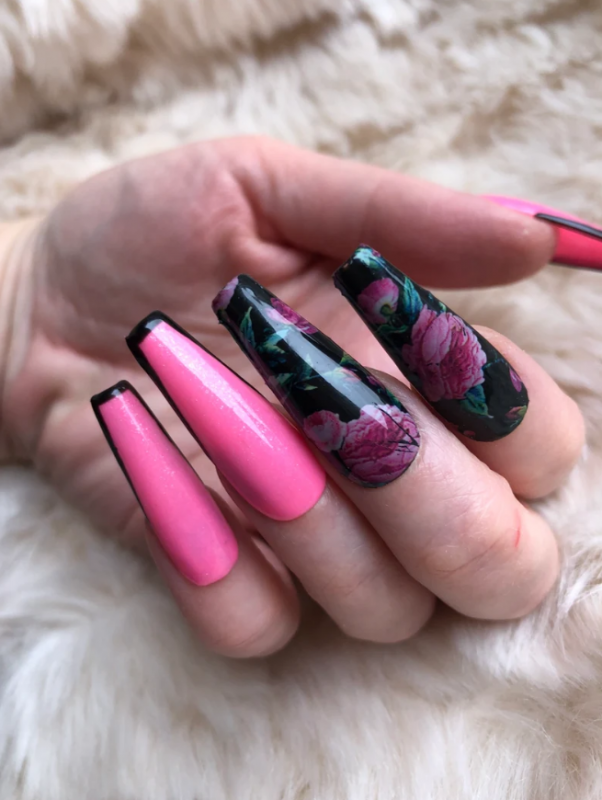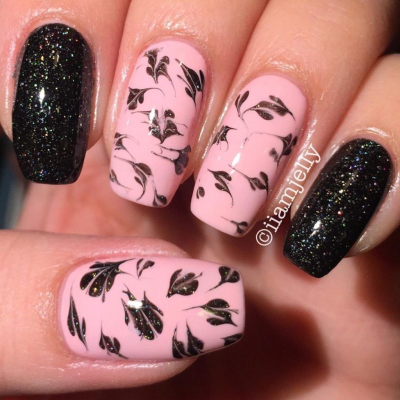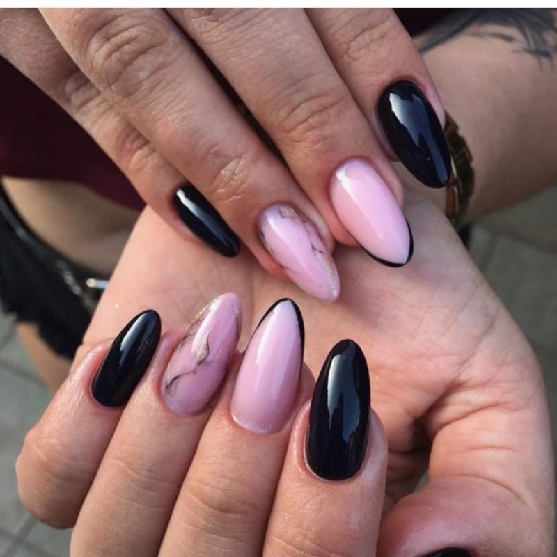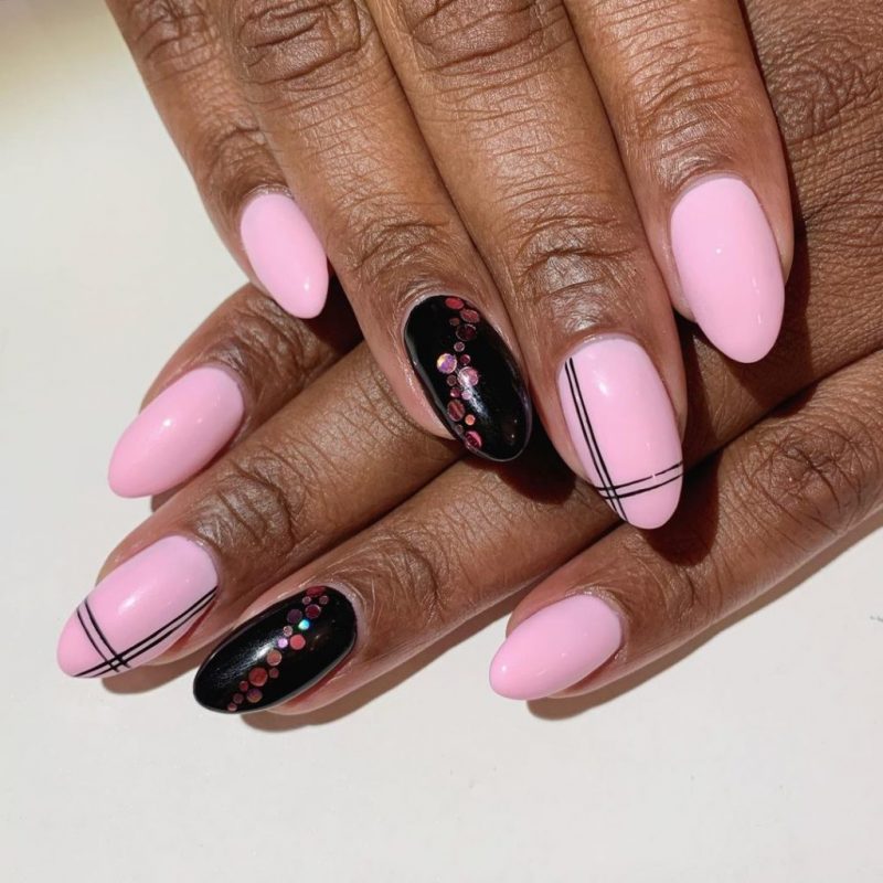 It’s impossible to overlook pink, especially when it’s paired with the most classic and striking of all neutrals, black. The tone of your nail design, however, all depends on the shades you choose.