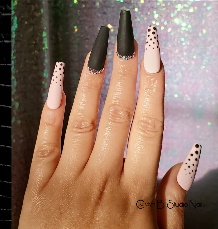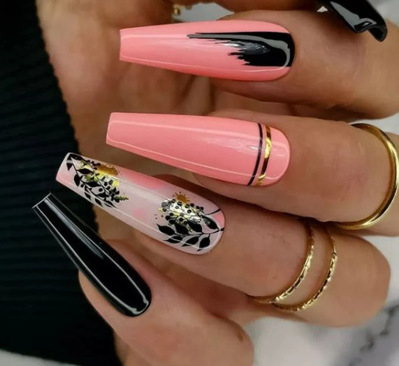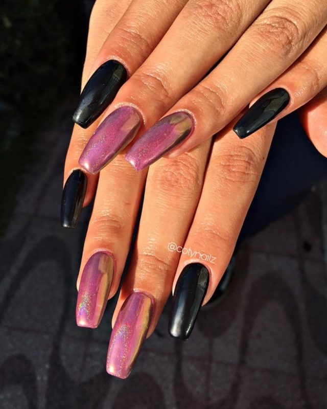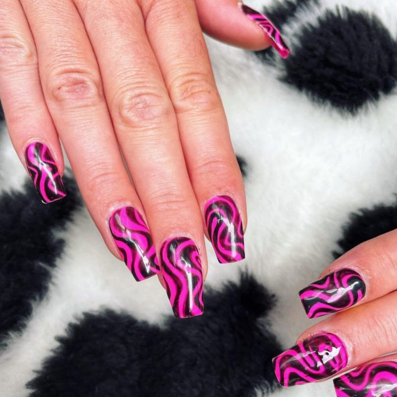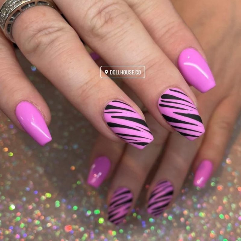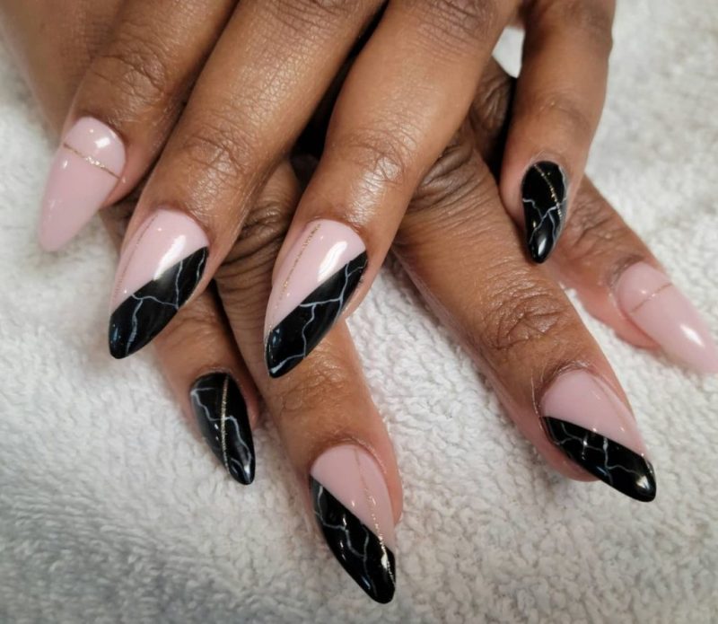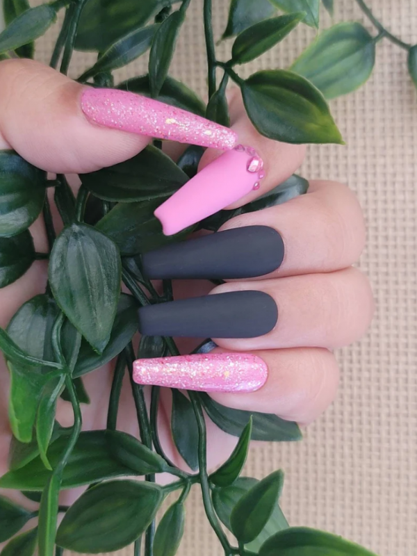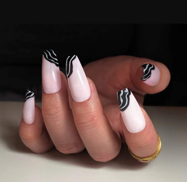 It’s impossible to overlook pink, especially when it’s paired with the most classic and striking of all neutrals, black. The tone of your nail design, however, all depends on the shades you choose.