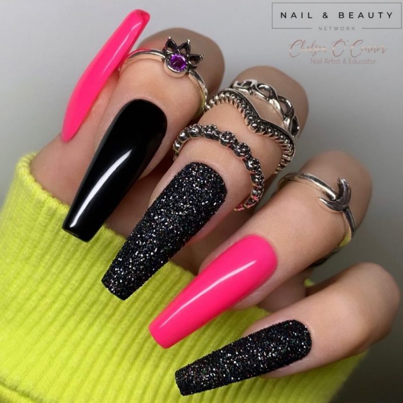 That’s why I’ve rounded up a list of the trendiest pink and black nail designs out right now. Just here following the advice of Essie Weingarten; “You’re never fully dressed without a good manicure.
