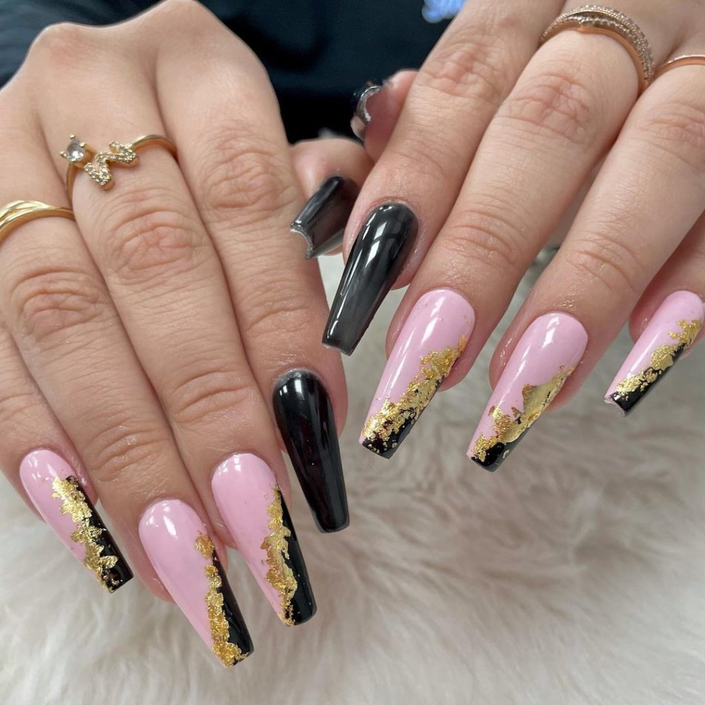 BLACK NAILS WITH PINK AND WHITE【+20 Great Ideas】