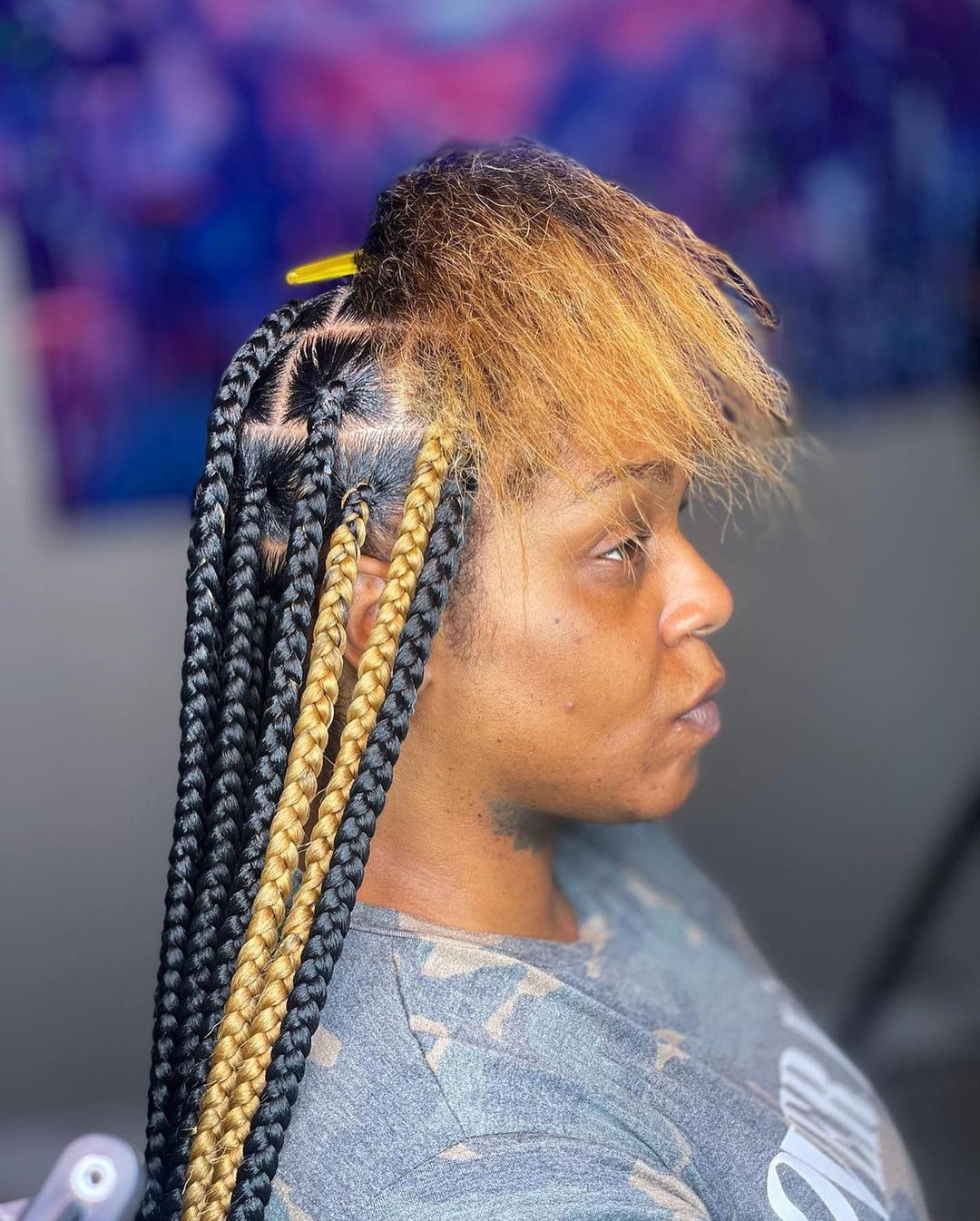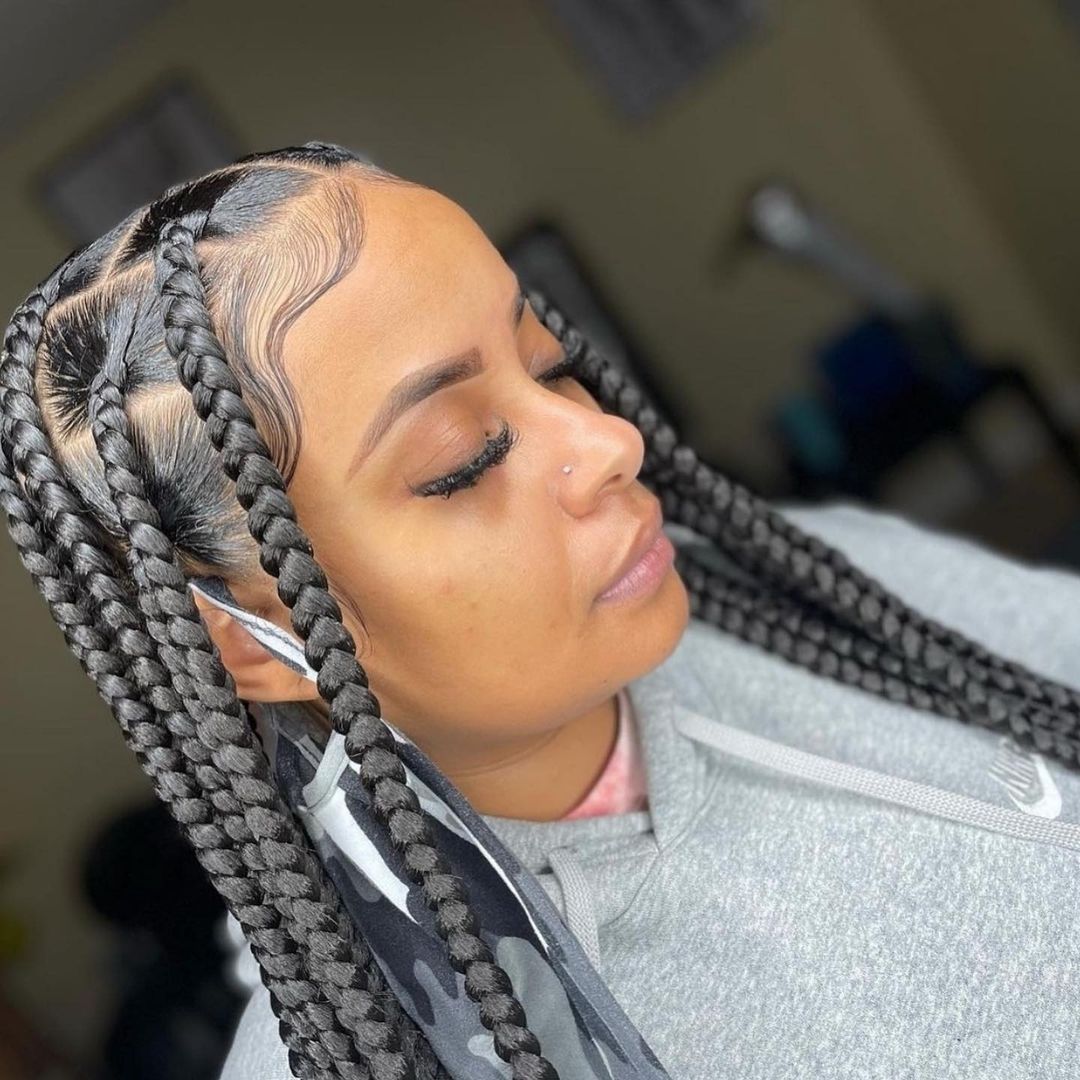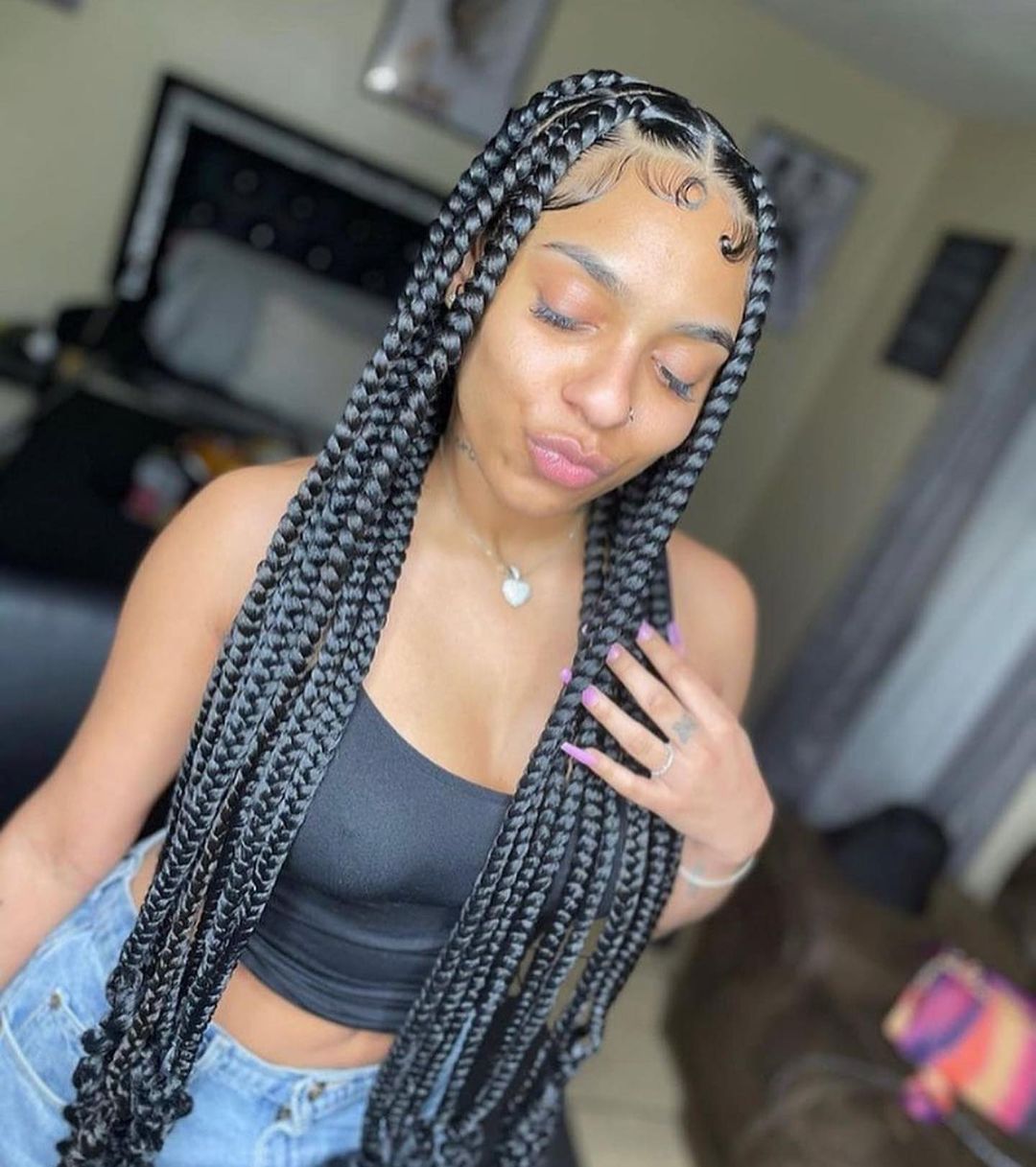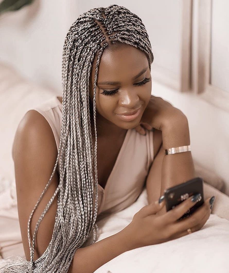2. Box Braids with a Modern Twist 💫: Celebrated for their versatility, box braids can be adorned with beads, metallic threads, or colorful extensions, adding a playful touch to a traditional style.