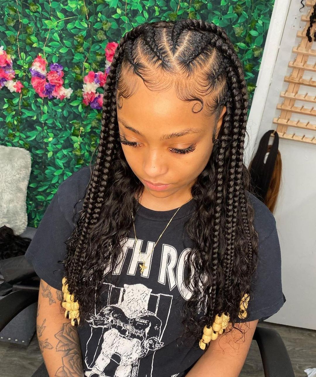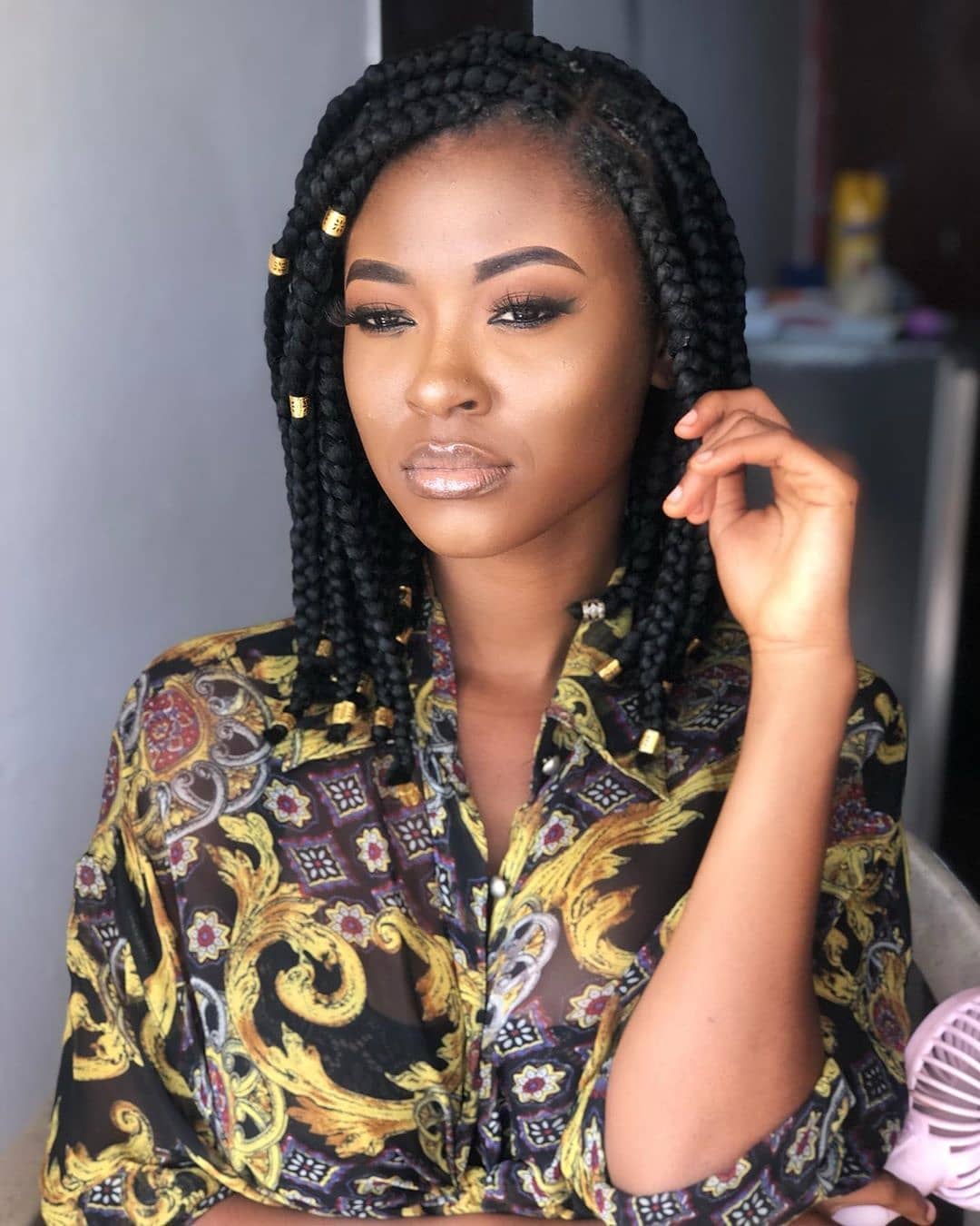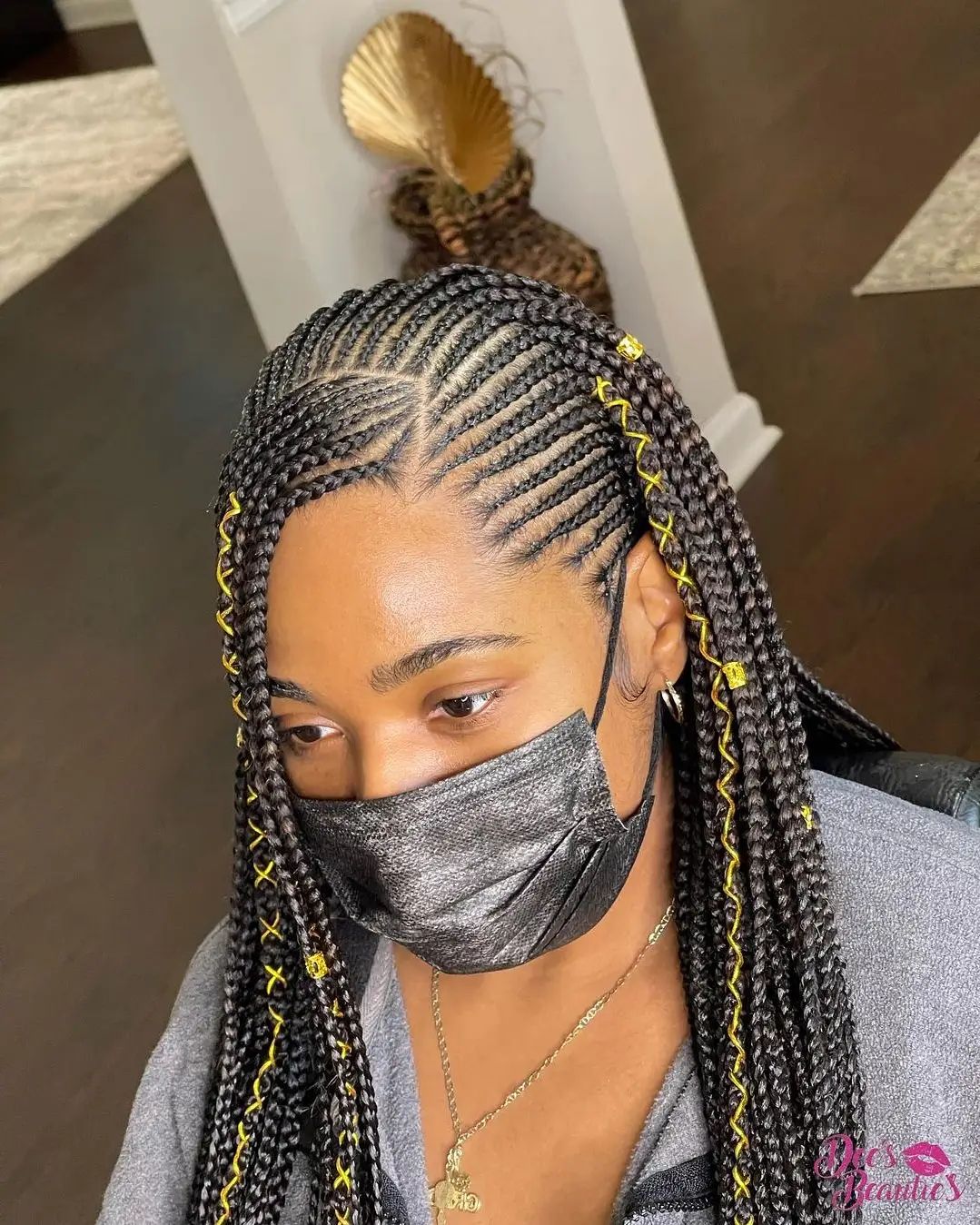 2. Box Braids with a Modern Twist 💫: Celebrated for their versatility, box braids can be adorned with beads, metallic threads, or colorful extensions, adding a playful touch to a traditional style.