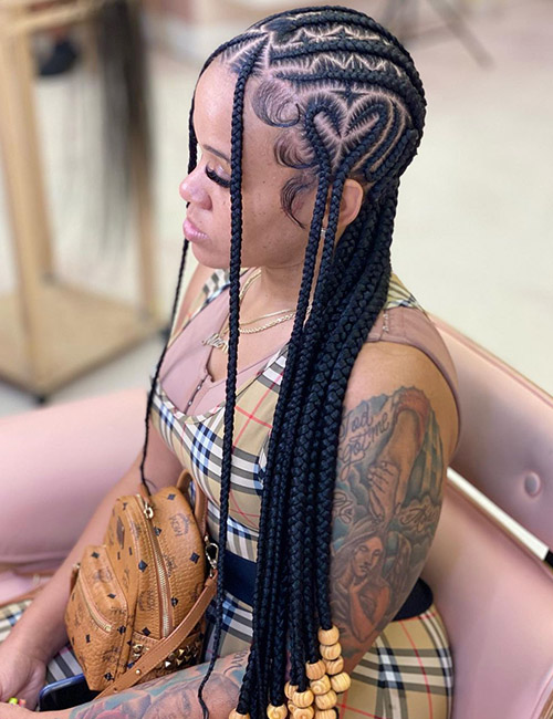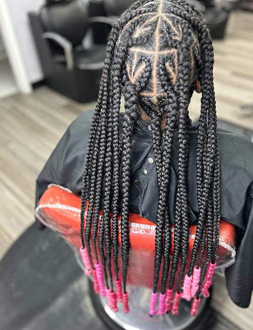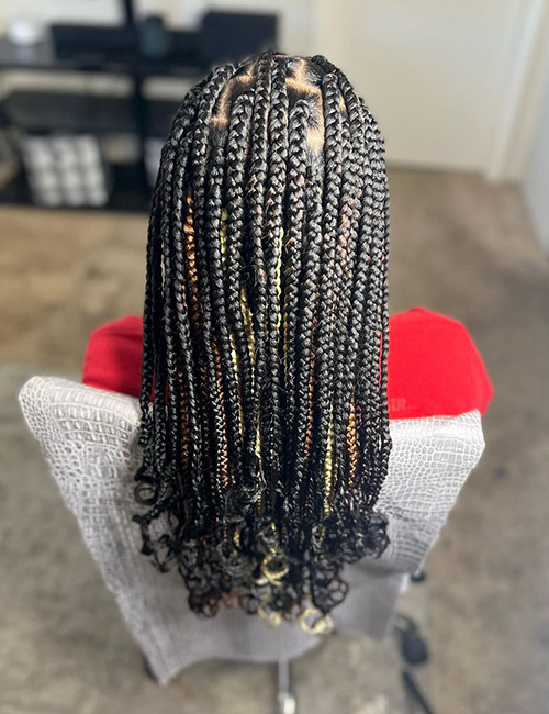 2. Bohemian Knotless Braids with Beads: Add a bohemian flair to your knotless braids by incorporating colorful beads or shells at the ends. This style adds a playful and stylish touch to your protective hairstyle.