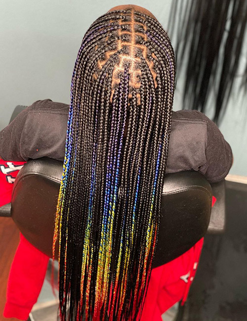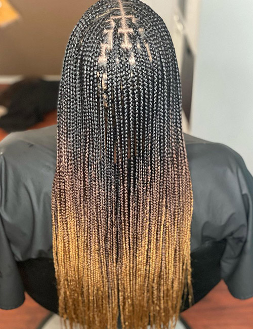 9. Thin and Delicate Knotless Braids: For a subtle and delicate appearance, opt for thin knotless braids that offer a refined and intricate look. This style complements various occasions and outfits.