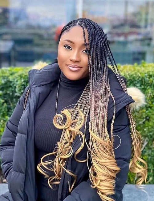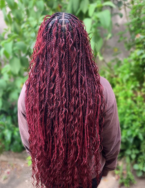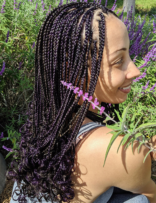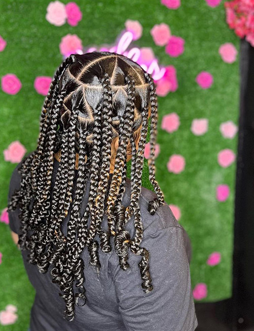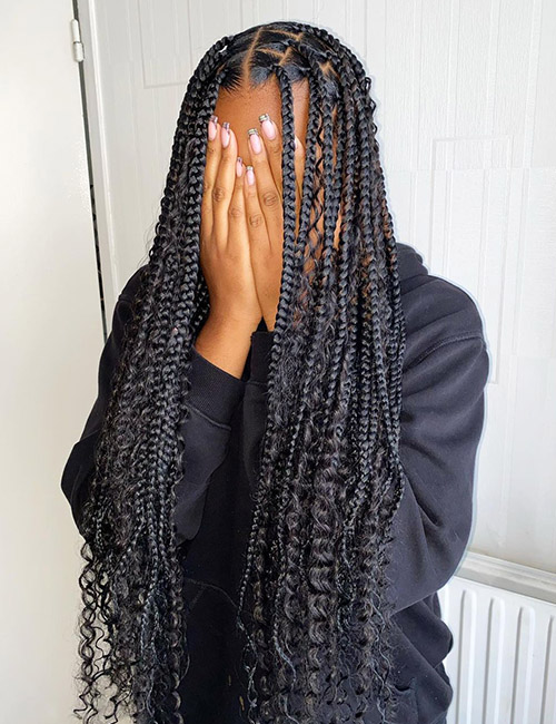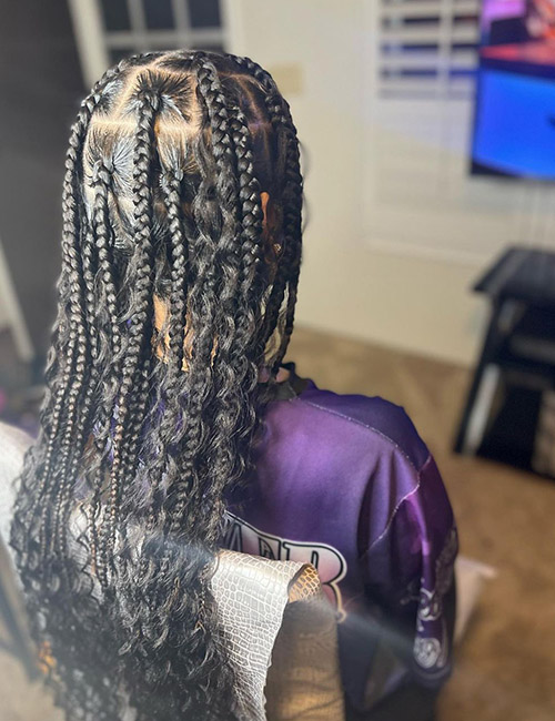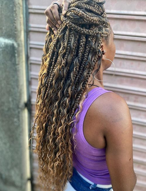 7. Knotless Braids with Curly Ends: Opt for braids with curly or wavy ends for a textured and dynamic look. This style adds movement and volume to your hair, creating a playful and carefree vibe.