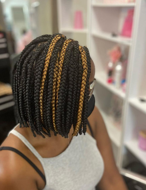 4. Bob-Length Knotless Braids: Embrace the bob trend with knotless braids that fall around your chin or collarbone. This length adds a modern and edgy twist to your protective style.