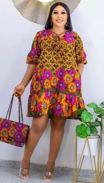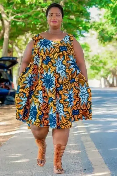 8. A-Line Ankara Dresses: A-line dresses are a classic choice for curvy figures as they gently flare out from the waist. Explore how to embrace Ankara A-line dresses that provide comfort and style in equal measure.