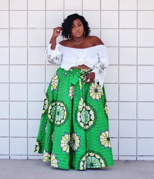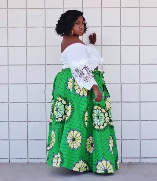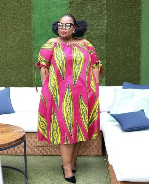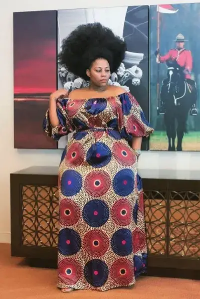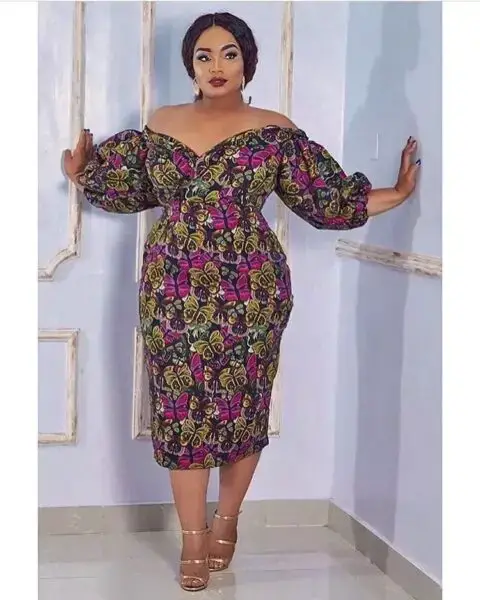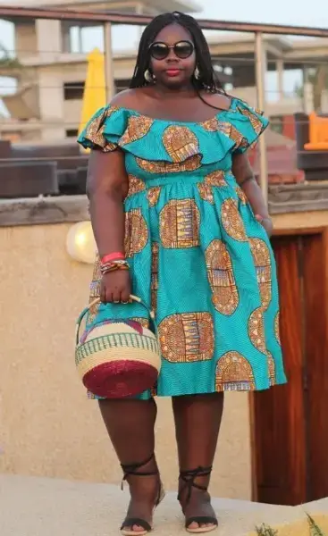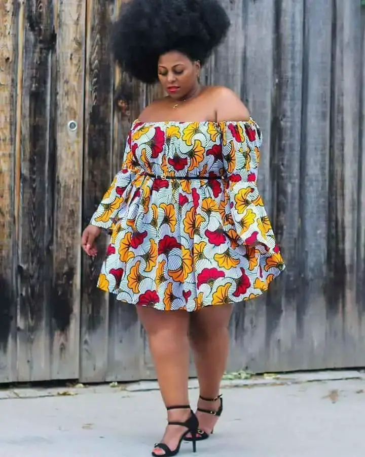 7. Off-Shoulder Ankara Styles: Off-shoulder styles are both trendy and flattering for curvy women. Learn how to choose off-shoulder Ankara tops and dresses that showcase your shoulders while maintaining a balanced look.
