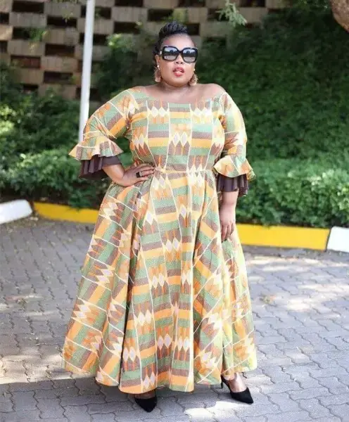 1. Graceful Ankara Maxi Dresses: Maxi dresses offer a perfect blend of comfort and style for curvy figures. Explore how to choose Ankara maxi dresses with flattering silhouettes and waist emphasis, creating an effortlessly elegant look.