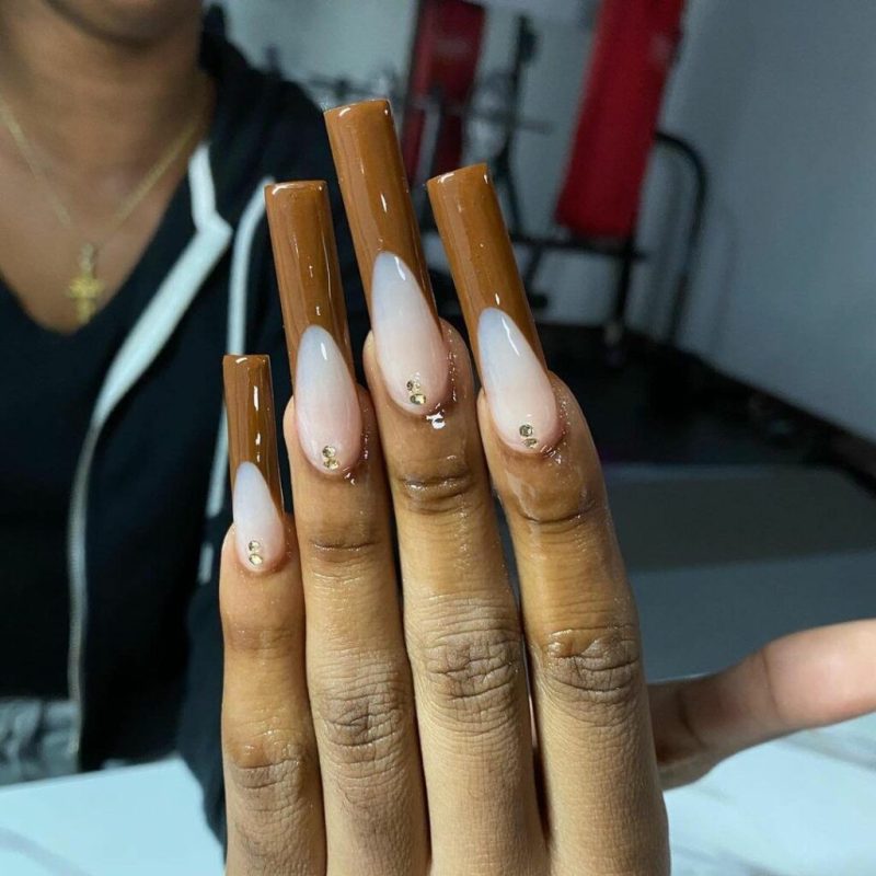 To take things a step further, there’s another trend that’s been picking up lately; brown french tips. Imagine combining such a sophisticated neutral with one of the most classic nail designs. With brown french tips, you’re bound to enjoy a beyond fashionable set.