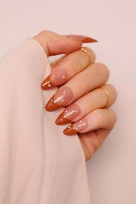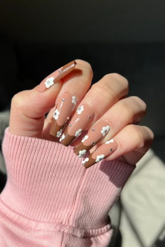 Of course, you can play around with a brown french manicure, adding cute accents and contrasting colors to make the finished look pop. To give you some fresh ideas, I’ve compiled a list of gorgeous and trending brown french nail designs that you won’t be able to get enough of.