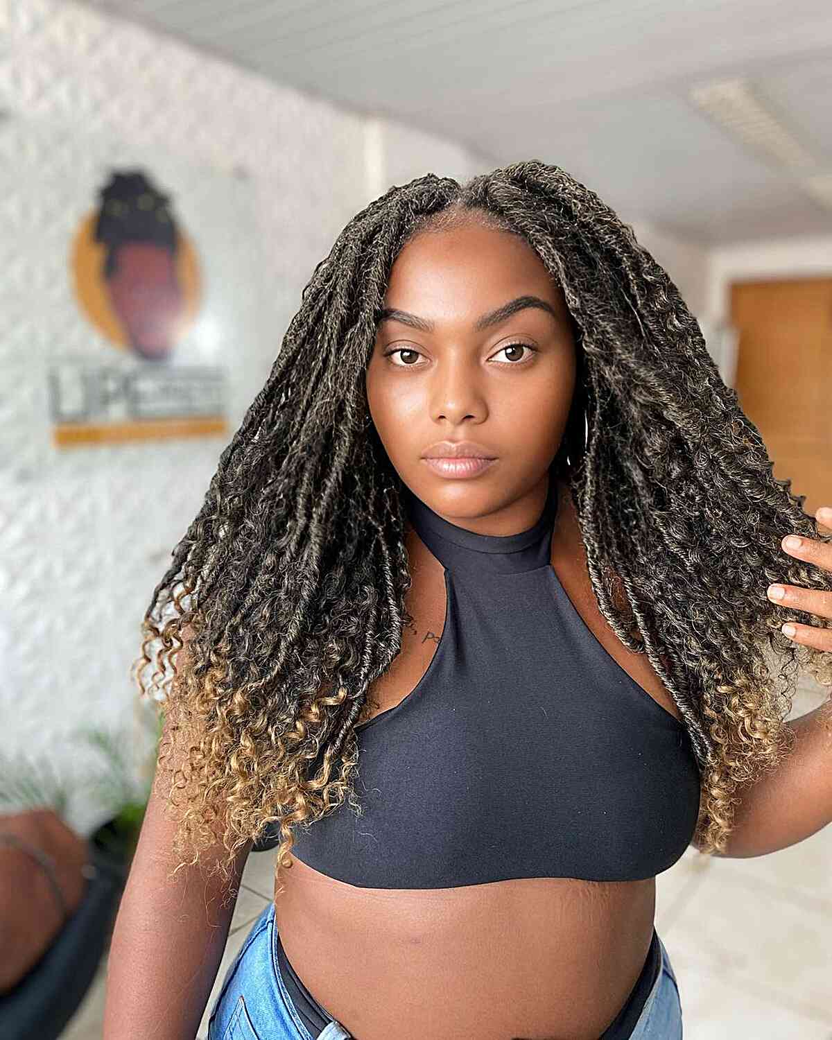 61. Long Kinky Twists: Explore the elegance of long kinky twists that offer a sophisticated and timeless appearance.