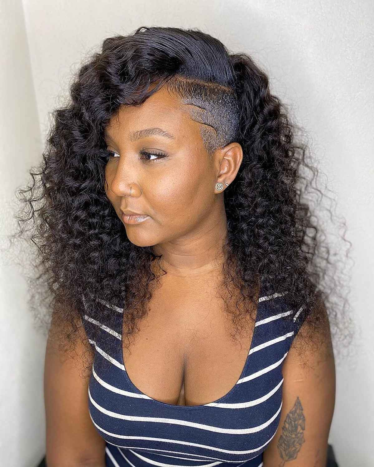 51. Curly Mohawk with Side Swept Bangs: Blend curls and attitude with a curly mohawk featuring side-swept bangs for a bold and stylish look.