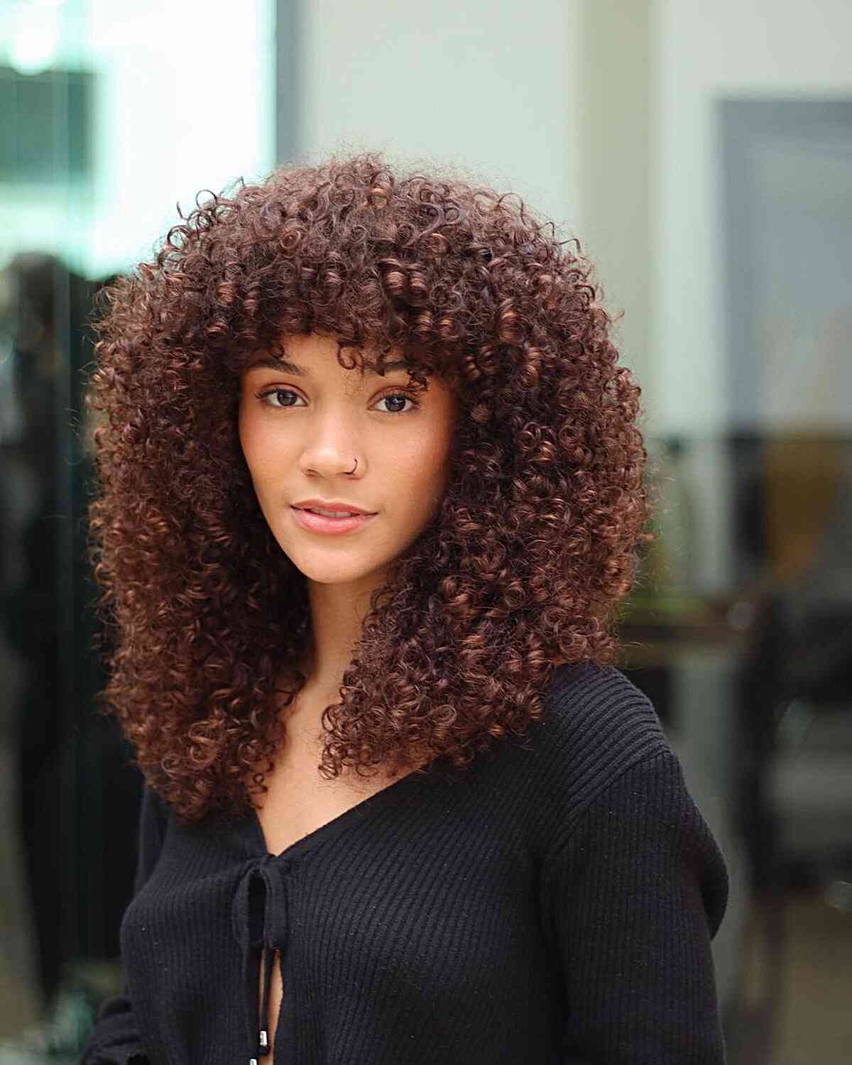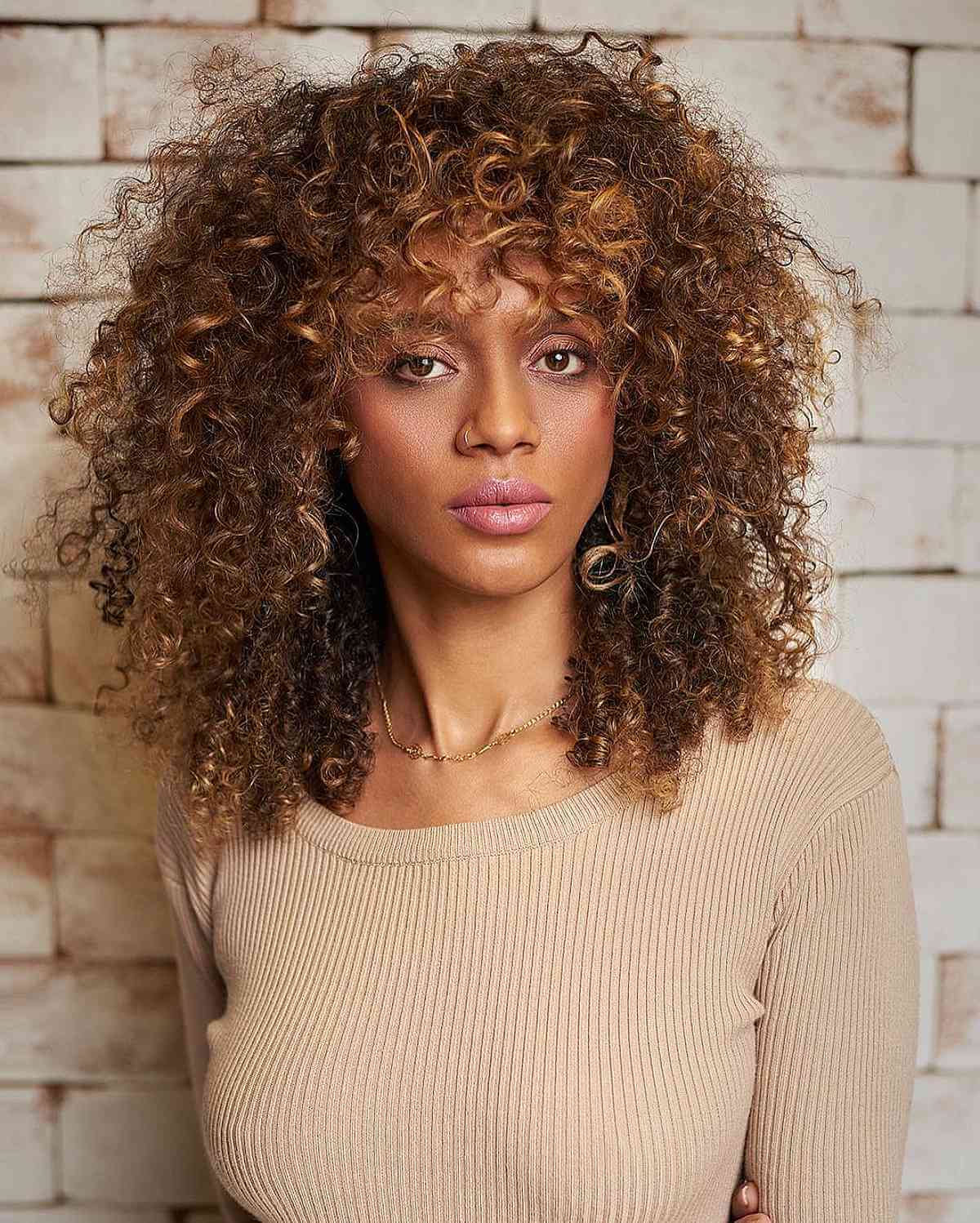 11. Curly Bangs with Shag Cut: Rock curly bangs paired with a shag cut for a stylish and carefree look that embraces natural texture.